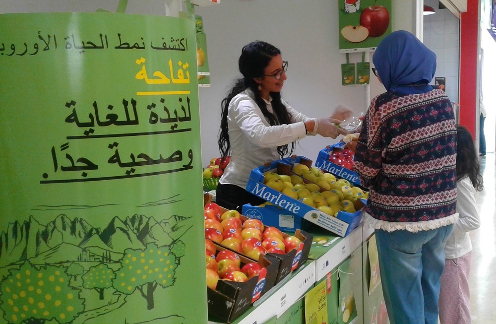In Marokko wurde der Südtiroler Apfel g.g.A. in den drei Jahren des Projekts an 30 Tagen in verschiedenen Einkaufszentren zur Verkostung angeboten und den Konsumenten präsentiert. Im direkten Kontakt mit den Konsumenten sollte das Wissen über den europäischen Apfel erweitert werden. Die Initiative richtete sich an die kaufkräftige Mittel- und Oberschicht, die daran interessiert ist, Qualitätsprodukte mit nachverfolgbarer Herkunft zu kaufen. Insgesamt wurden 22.500 Golden Delicious, Red Delicious und Granny Smith verteilt.