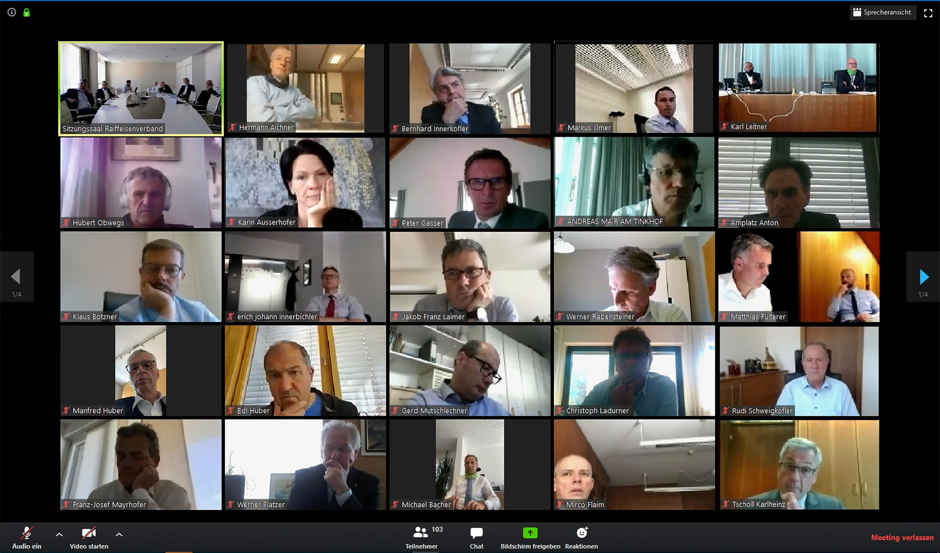 An den virtuellen Treffen in Krisenzeiten nahmen über 90 GeschäftsführerInnen und Mitarbeitende der Raiffeisenkassen und des Raiffeisenverbandes Südtirol teil.