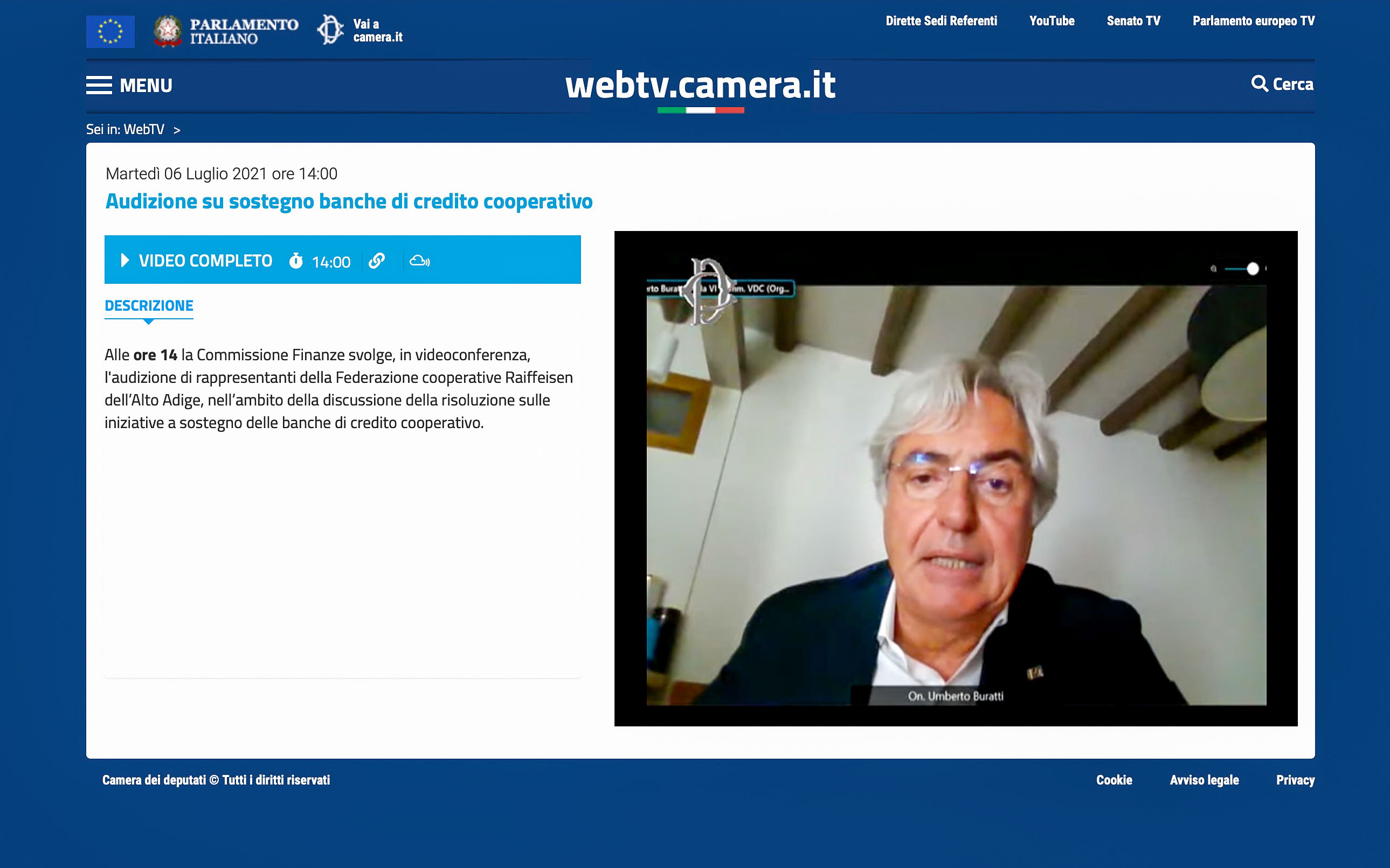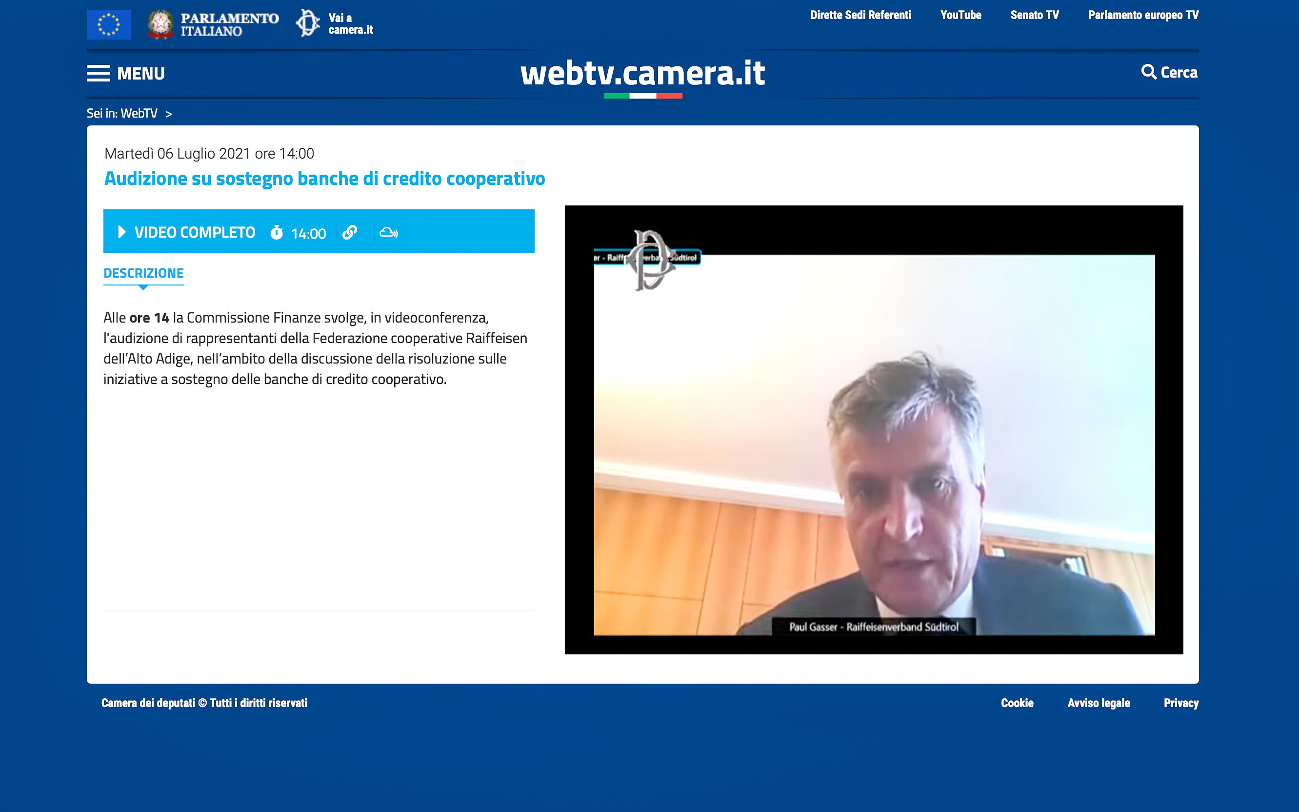 Im Rahmen der Anhörung in der Finanzkommission der Abgeordnetenkammer unterstrich der Generaldirektor des Raiffeisenverbandes Südtirol, Paul Gasser, die Bedeutung der Resolution. Diese wurde von einer Gruppe um den Abgeordneten Umberto Buratti vorgelegt. Gasser betonte, dass deren Inhalte auch für die Raiffeisenkassen wichtig sind.