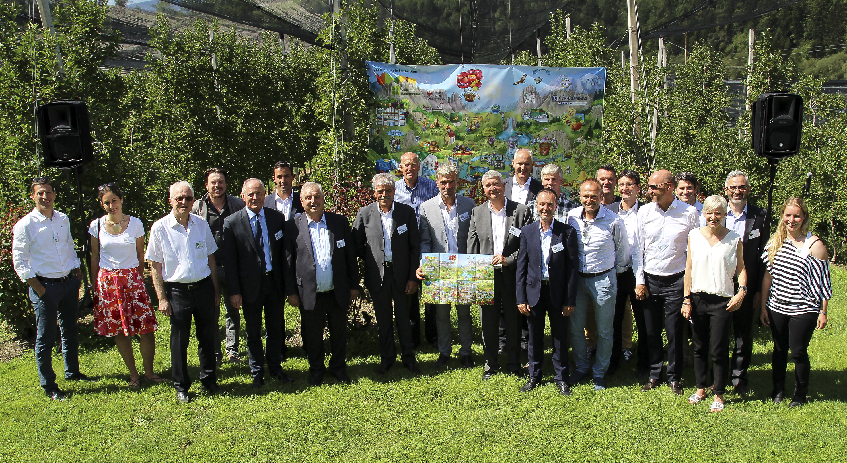 „Obwohl ich ja selbst Obstbauer bin, war ich überrascht, wie groß die Apfelfamilie geworden ist“, bekräftigte auch Arnold Schuler, Landesrat für Landwirtschaft. Die Südtiroler Landwirtschaft, so auch die Obstwirtschaft, bestehe ja aus durchschnittlich sehr kleinen Bauernhöfen mit 2,5 Hektar Größe. „Damit wurde es notwendig, aus der Not eine Tugend zu machen und die Kräfte zu bündeln – so entstanden die Genossenschaften und viele weitere Organisationen, die gemeinsam an einem großen Ganzen mitwirken“, so Schuler, der auch auf eine entsprechende Auszeichnung der FAO verwies. Er berichtete von einer Fahrt nach Serbien und Polen, wo die Betriebe Anbauflächen von 100 Hektar und mehr haben – und wo für den Anbau Pflanzenschutzprogramme und andere Strategien entwickelt werden, die auf keine geografischen Unterschiede Rücksicht nehmen.