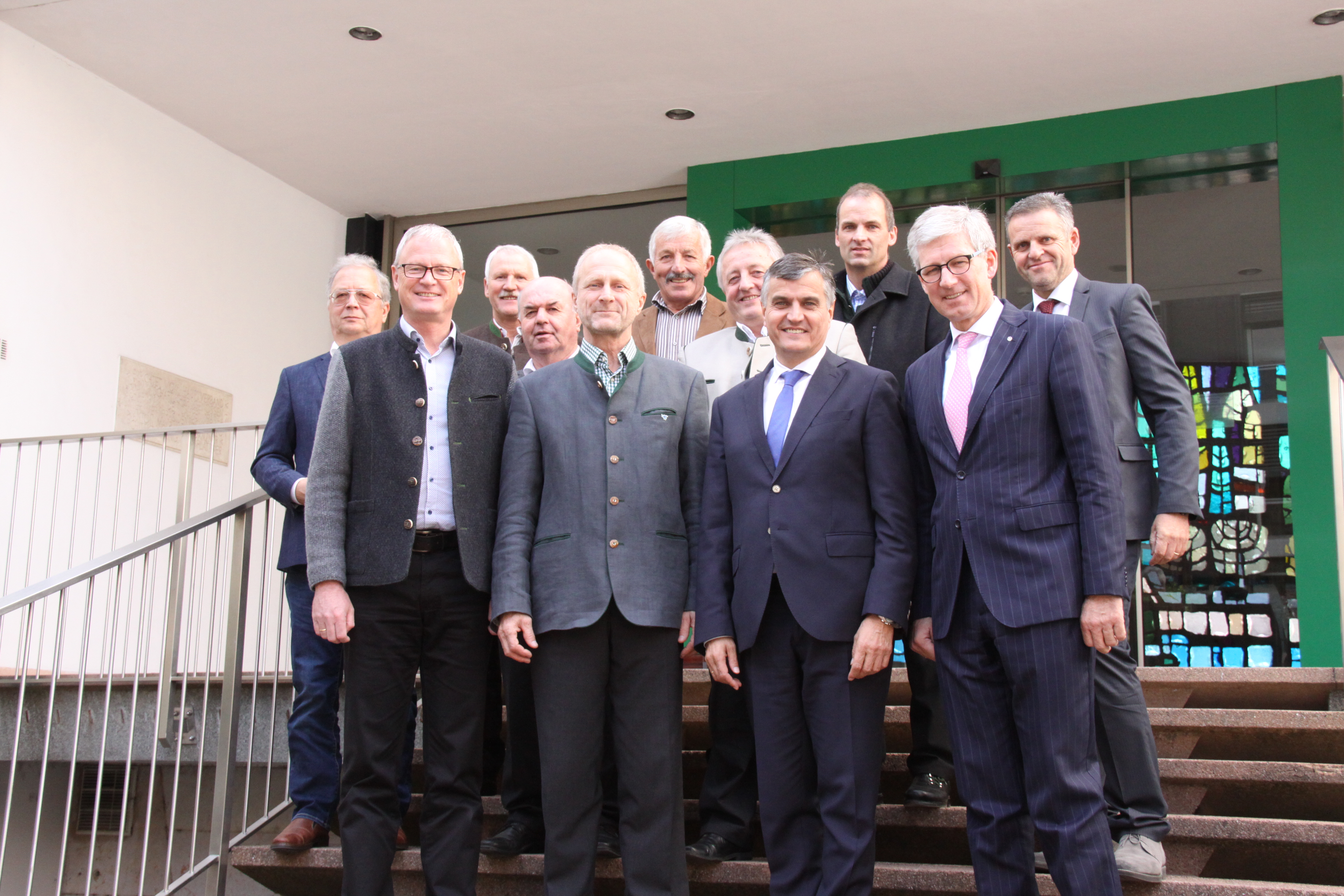 Der Obmann des Raiffeisenverbandes Herbert Von Leon hieß die Gäste aus Bayern willkommen. Nach einem kurzen Einführung in die Geschichte Südtirols, die heimische Wirtschaft und die Raiffeisenorganisation, informierte Generaldirektor Paul Gasser unter anderem über die Reform der italienischen Genossenschaftsbanken und die Bildung einer eigenen Raiffeisen-Bankengruppe.