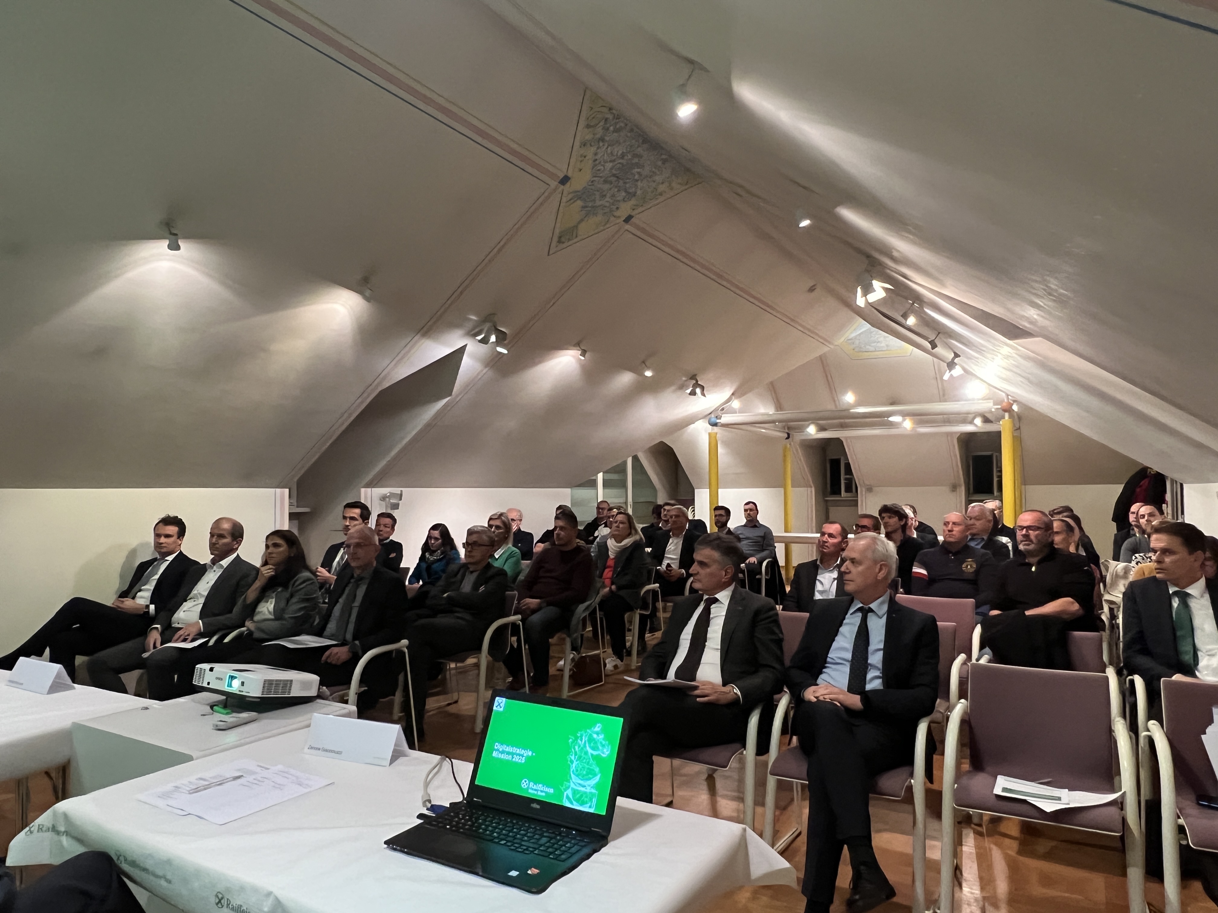 Erläutert wurden die diversen Aspekte der neuen Digitalstrategie bei den Fortbildungsabenden von Simon Ladurner von der Raiffeisen Landesbank (Teilstrategien), Astrid Schweiggl vom Raiffeisenverband (strategische Ausrichtung), Gabriel Klement von der Raiffeisen Information Service KonsGmbH (operative Umsetzung), Christian Tanner vom Raiffeisenverband (Change-Management) und mehreren Vertreter*innen der Raiffeisenkassen (Perspektive der Raiffeisenkassen).