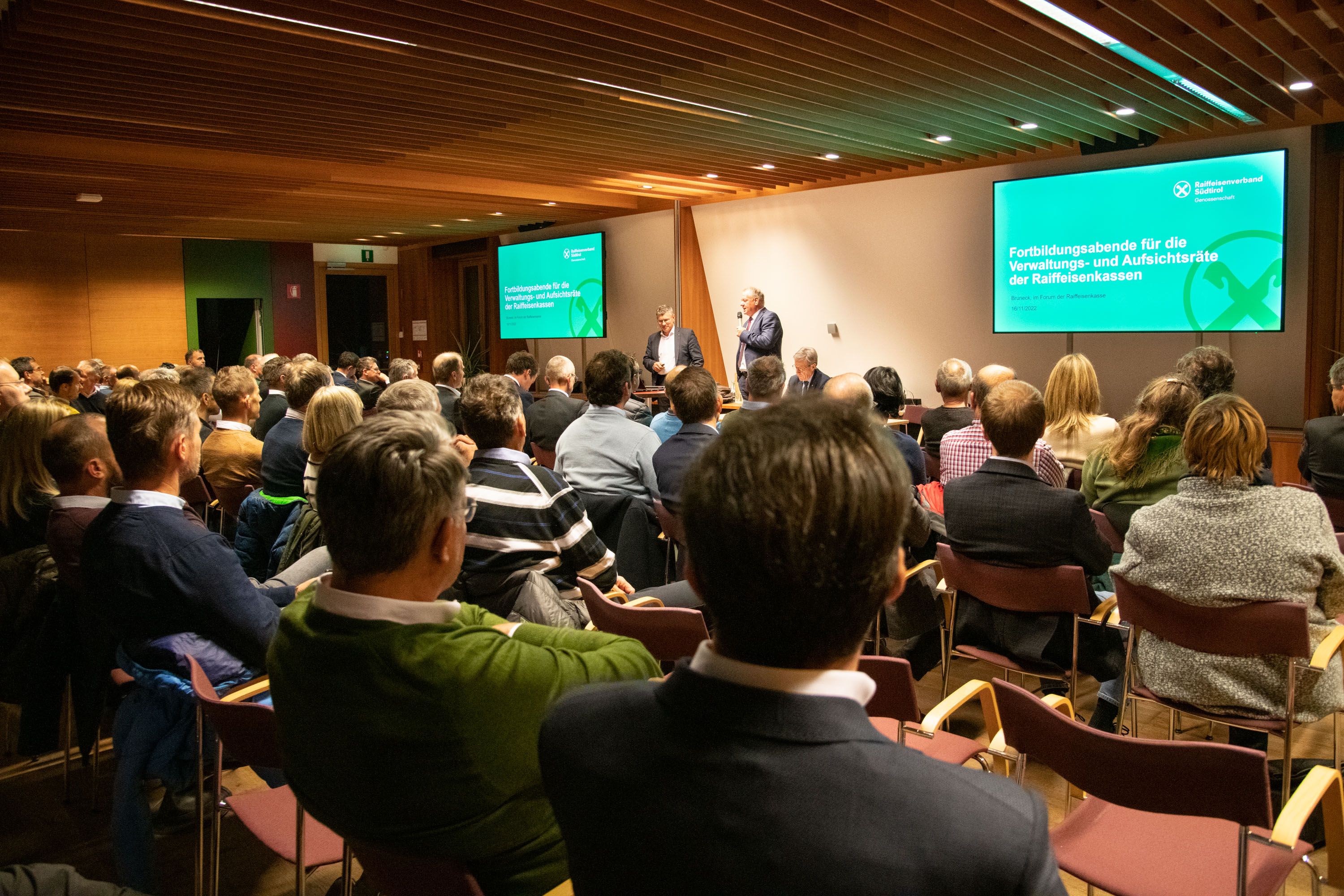 Verbandsobmann Herbert Von Leon hieß in Bozen, Lana, Latsch und Bruneck über 250 Mandatarinnen und Mandatare der Raiffeisenkassen willkommen. Der Raiffeisenverband veranstaltet die Fortbildungsabende seit 2015. Sie dienen neben der fachlichen Qualifizierung der direkten Information und dem gegenseitigen Austausch.