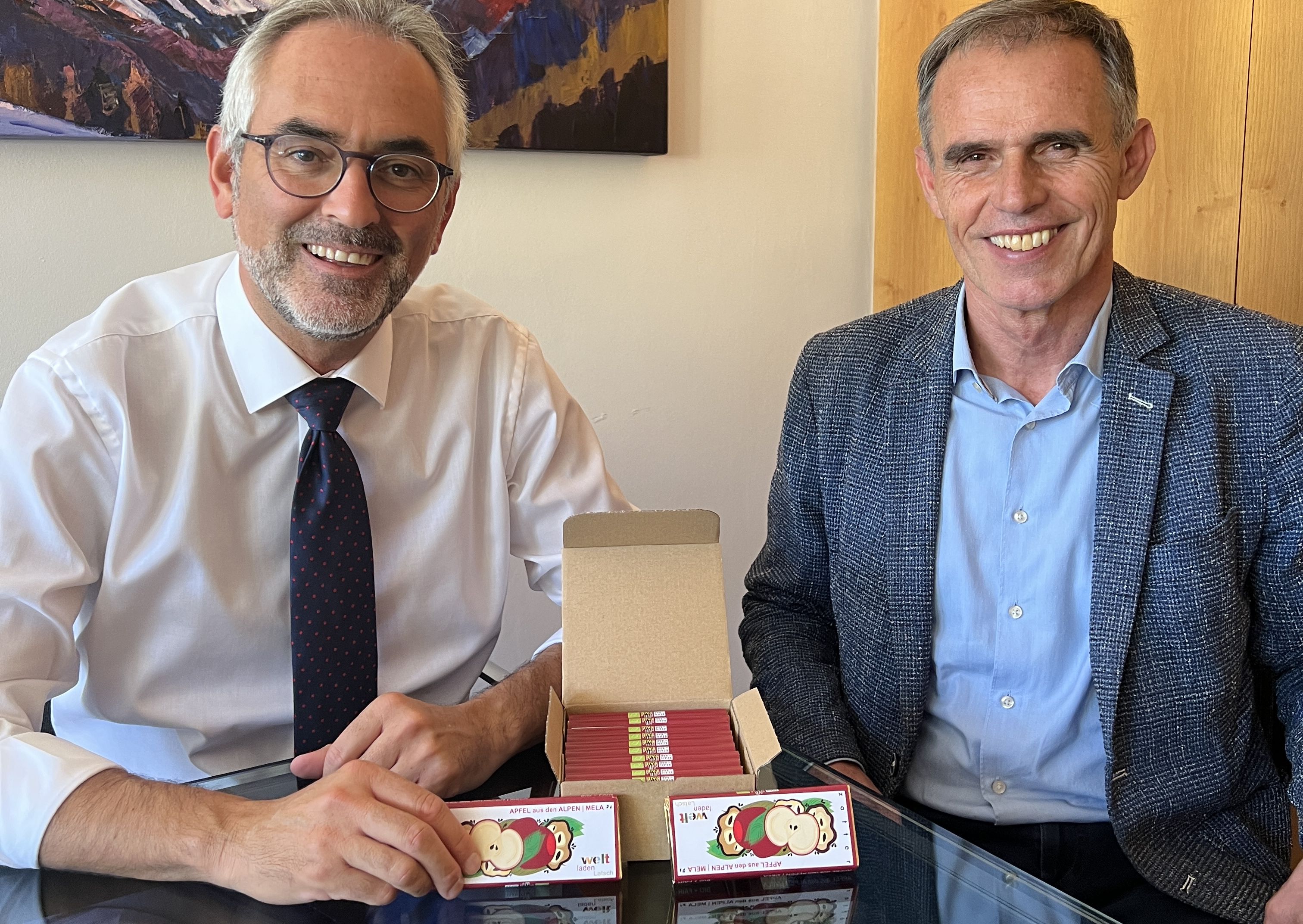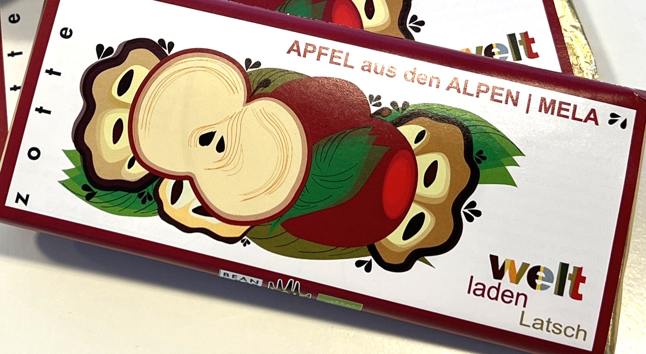 Der Apfel ist eines der wichtigsten landwirtschaftlichen Erzeugnisse Südtirols. Und er ist auch ein Marken-Botschafter des Landes. Für den Obmann des Weltladen in Latsch, Richard Theiner, ist das Potential der Südtiroler Äpfel aber noch nicht ausgeschöpft. Schon länger dachten er und sein Team an eine Kombination von Äpfeln und Schokolade: „Den entscheidenden Durchbruch brachte ein persönliches Gespräch mit Josef Zotter, dem Gründer der steirischen Schokoladenmanufaktur Zotter, auf einer Veranstaltung für Weltläden in Deutschland. Zotter meinte zwar, dass es nicht leicht sei Äpfel in eine Schokolade zu bringen. Aber wir probieren es“, erinnert sich Richard Theiner.