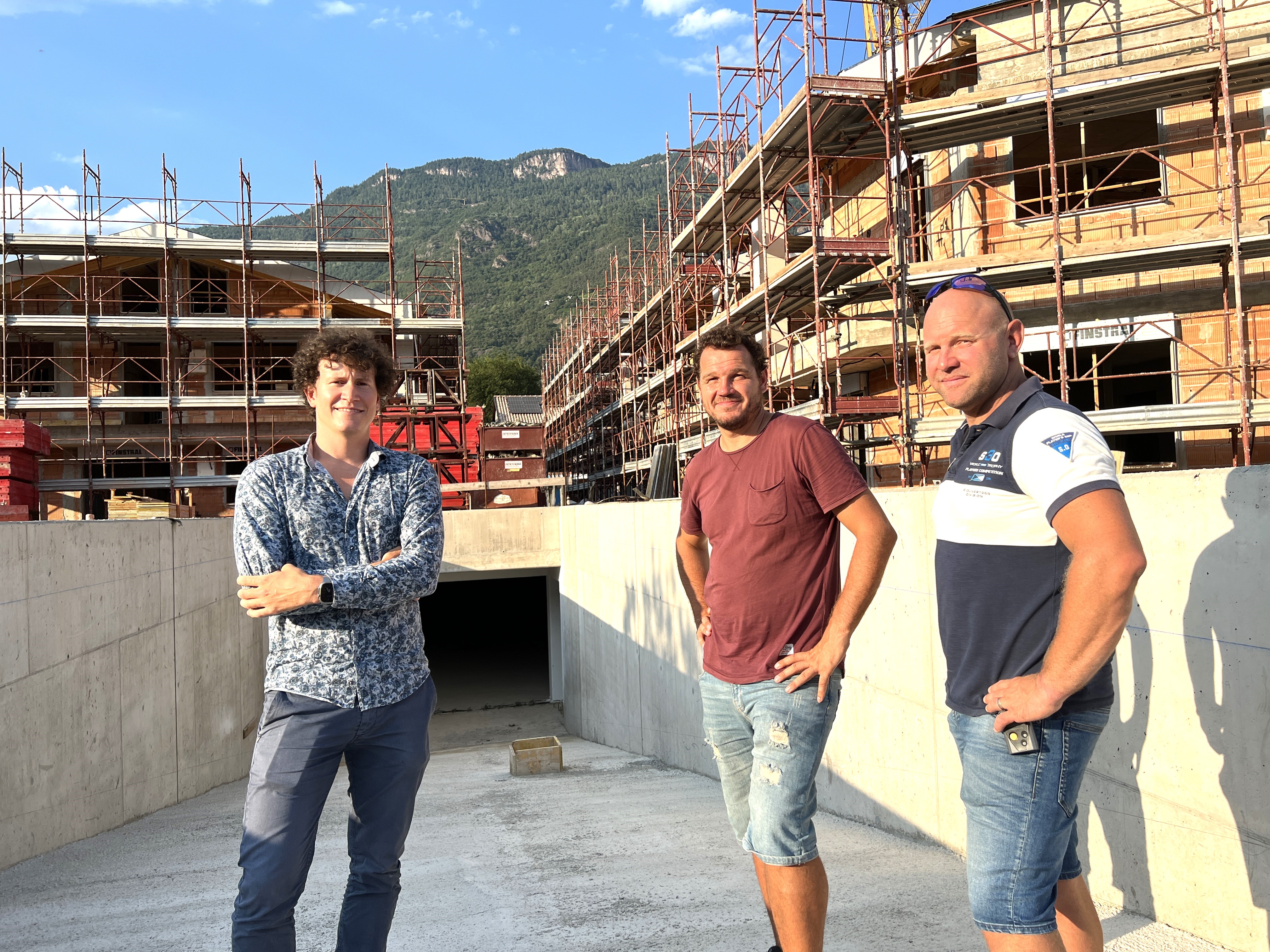 Nach dem erfolgten Aushub Ende 2022 steht nun der Rohbau fertig da – zwei Reihenhäuser und zwei Blöcke mit jeweils vier Wohnungen, in der Mitte ein offenes Stiegenhaus, Tiefgarage mit Keller und Untergeschoss. „Wir hatten zwar eine über einjährige Planungsphase, dafür hatten wir aber vom Aushub bis zum Rohbau keine Probleme, dass wir etwas nicht bedacht hätten, was dann zu wesentlichen Mehrkosten geführt hätte“, betont Daniel Pircher. Fast alles wurde von Südtiroler Firmen aus der näheren Umgebung gebaut, was auch die lokale Wirtschaft stärkt. Bis jetzt sind auch noch alle Mitglieder mit am Ball und werden es schaffen, sich den Traum vom Eigenheim zu erfüllen. Und wenn alles glatt läuft, werden die zehn Familien Anfang nächsten Jahres ihre genossenschaftlich gebauten Wohnungen beziehen können.