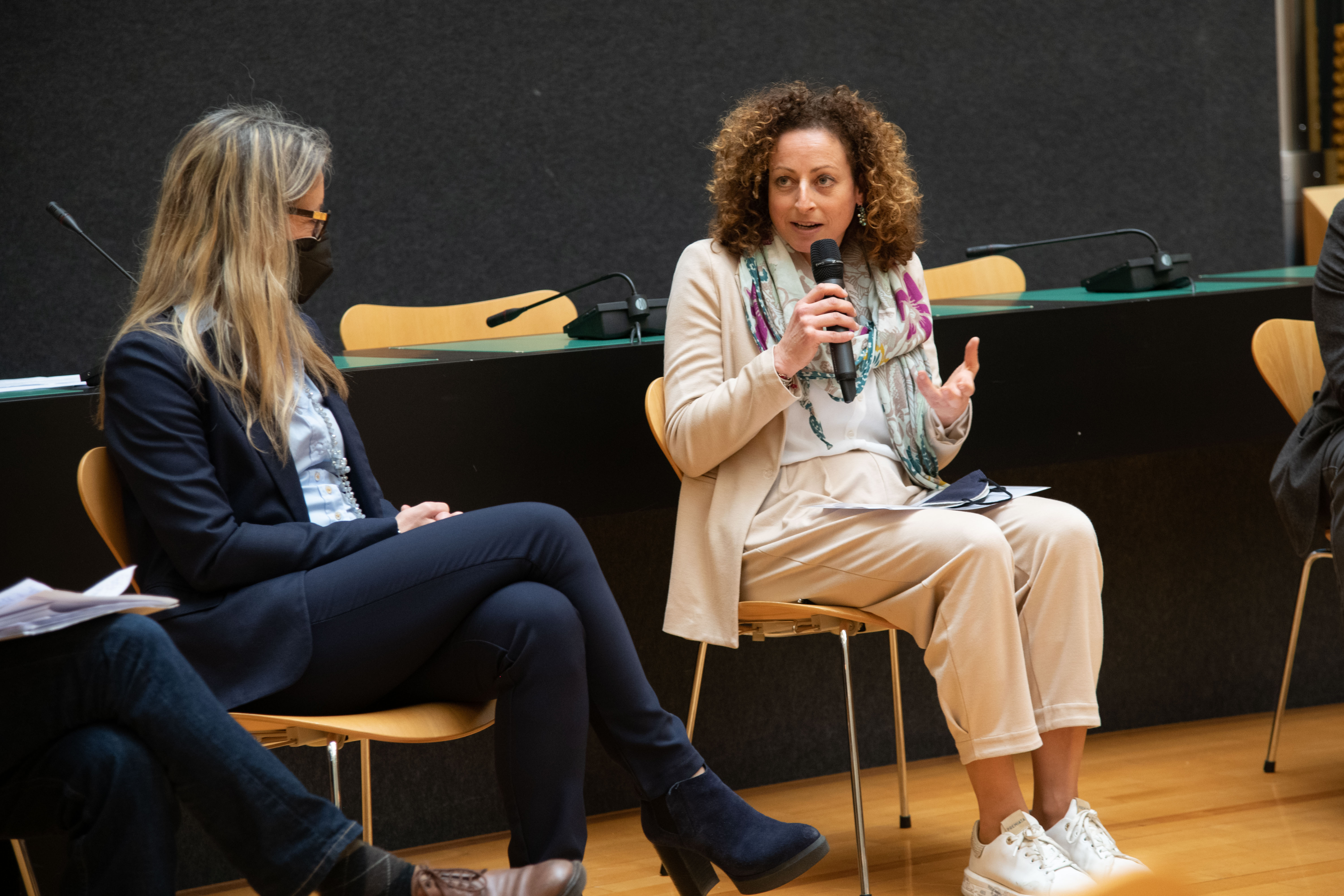 An dem von Alex Baldo (Coopbund), moderierten runden Tisch nahmen die Referenten und lokalen Akteure aus dem Sozialbereich teil. In Anlehnung an die präsentierten Beispiele diskutierten sie darüber, wie öffentliche und private Stellen zusammenarbeiten könnten, um ähnliche Lösungen zu finden, wie die Sozialgenossenschaft SOLE im Bereich aktives Altern älterer und hilfsbedürftiger Menschen.