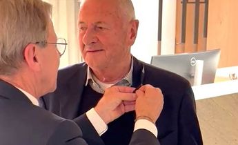 Der langjährige Obmann der Cassa Raiffeisen Val Badia Alfons Pezzei wurde mit der Raiffeisen-Ehrennadel in Gold ausgezeichnet.
