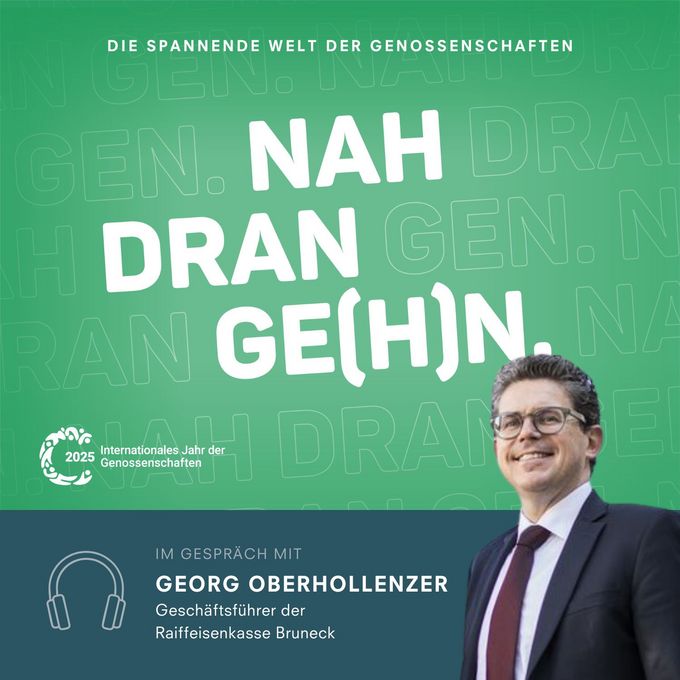 Zum Internationalen Jahr der Genossenschaften veröffentlicht der Raiffeisenverband Südtirol die Podcast-Serie „Nah.dran.ge(h)n“. In Folge #13 ist Georg Oberhollenzer zu Gast, der Direktor der Raiffeisenkasse Bruneck
