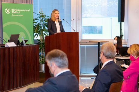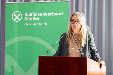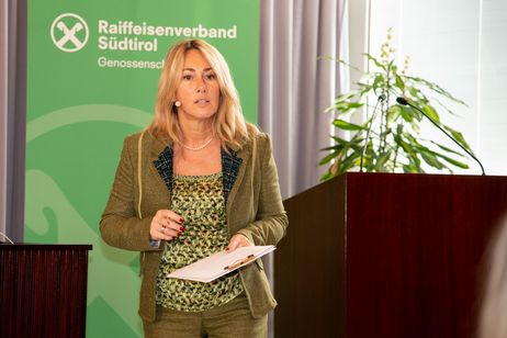 Manuela Paulmichl, Direktorin des Amtes für die Entwicklung des Genossenschaftswesens sprach über Bürgergenossenschaften und veranschaulichte anhand eines Beispiels in Moos in Passeier, dass die partizipativen Formen der Zusammenarbeit in Südtirol funktionieren.